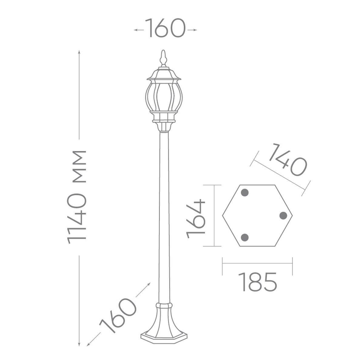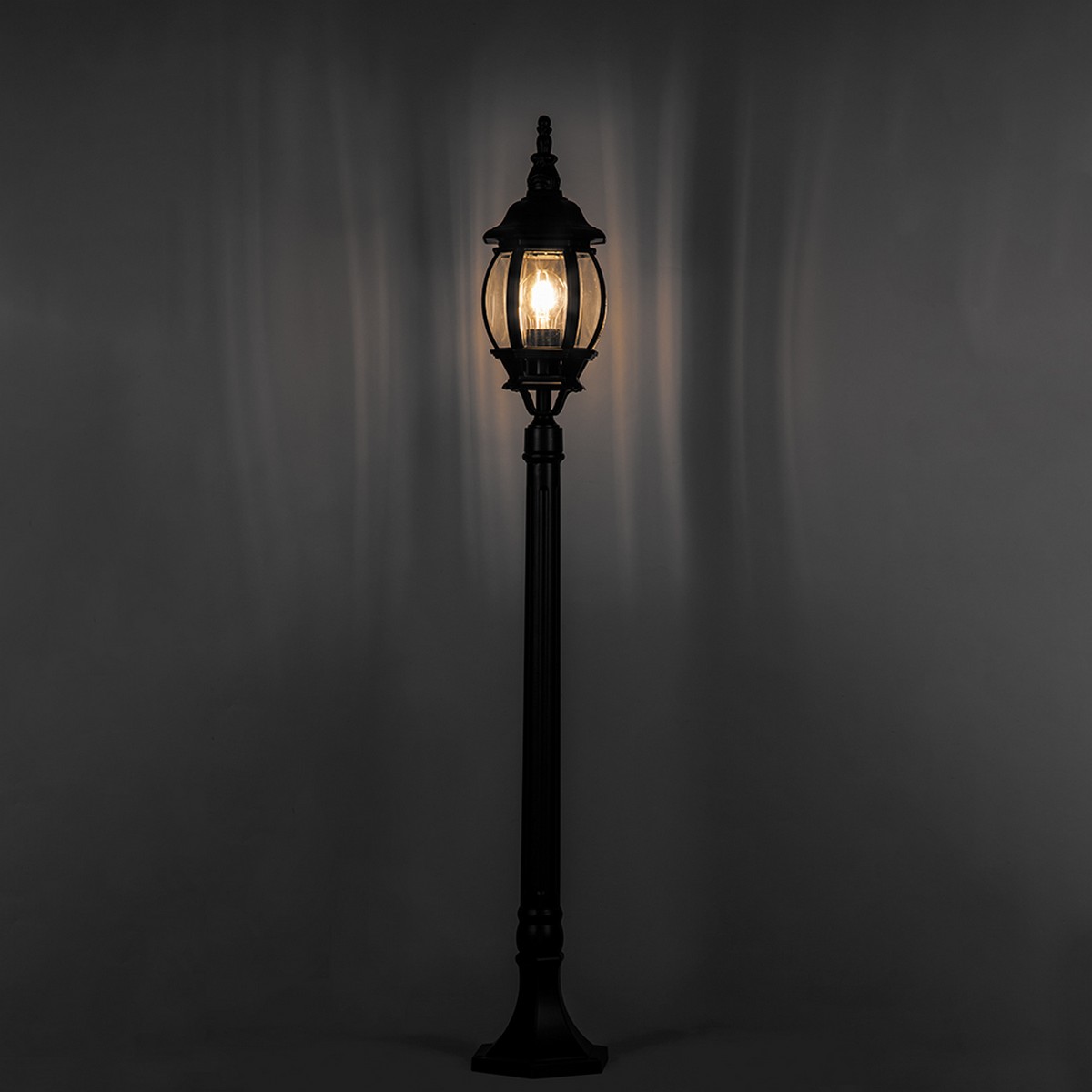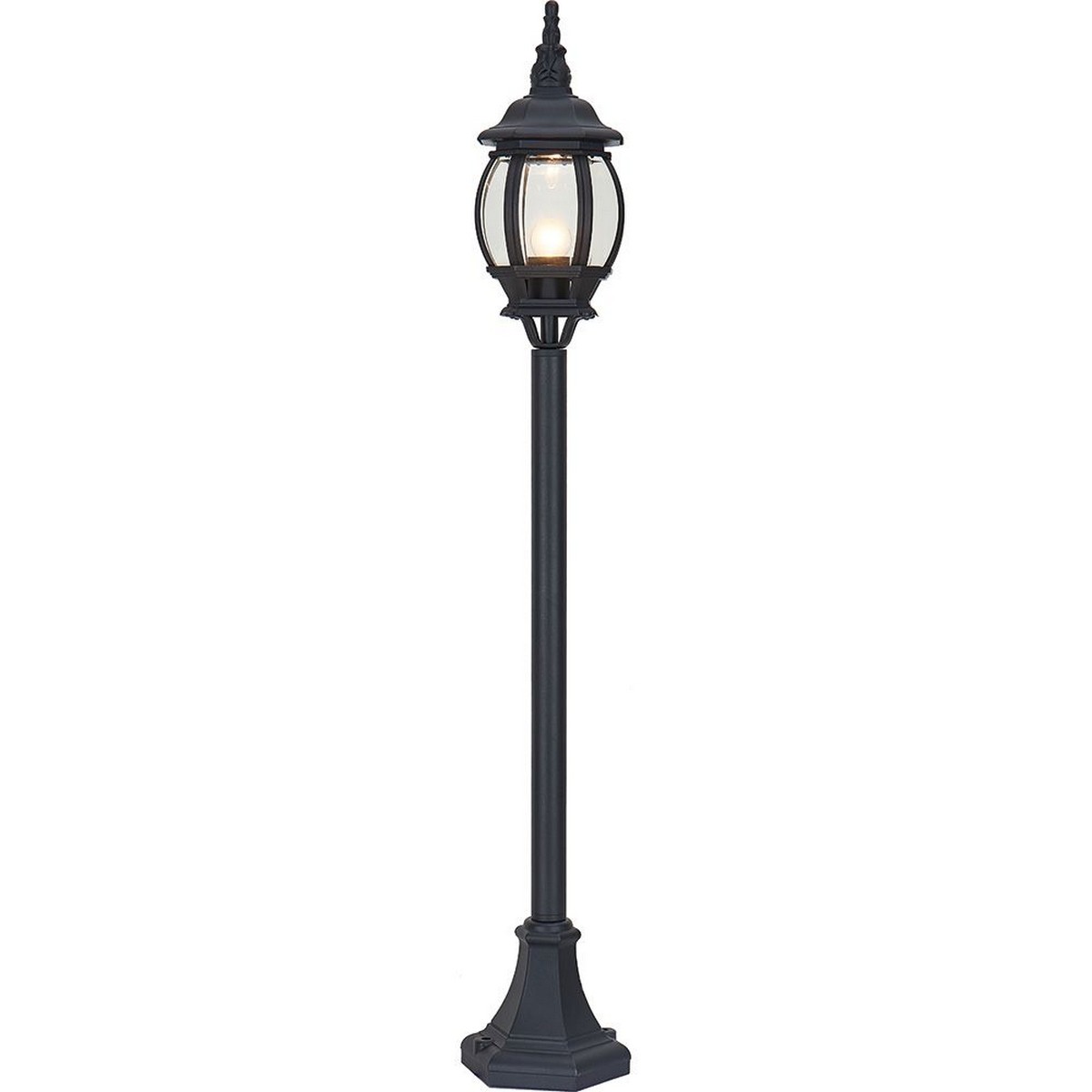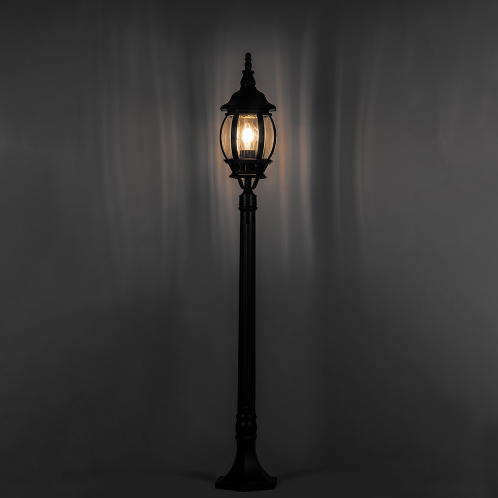 Стильный черный цвет и прямоугольная форма светильника добавят эстетическую ценность любой улице или саду, в то время как высокое качество стекла гарантирует равномерное и качественное распределение света. Светильник оснащен цоколем E27 и рассчитан на лампы с максимальной мощностью до 100W, обеспечивая хорошую видимость в темное время суток. Размеры изделия составляют 160x160x1140 мм, что позволяет значительно осветить территорию при сравнительно компактных размерах.
