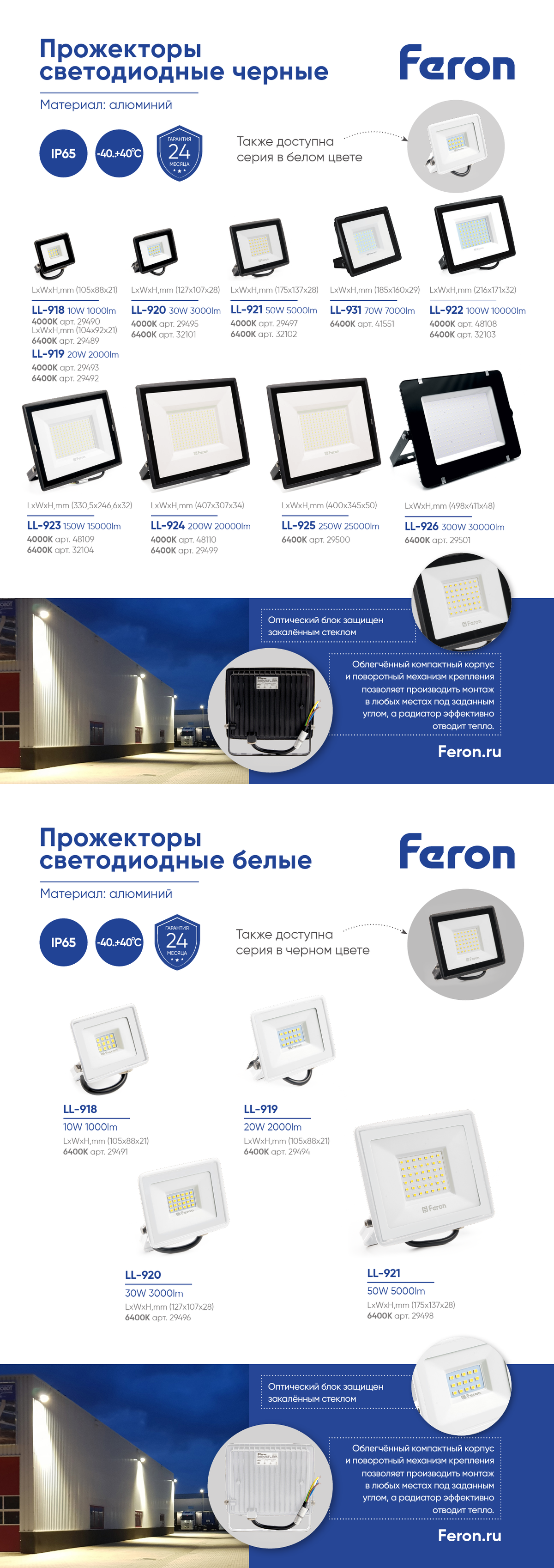 Ультратонкие прожекторы нового поколения Feron LL-921 артикул 29497, предназначены для решения широкого спектра задач по освещению открытых пространств, архитектурных объектов, торговых площадей, подсветки парковок, рекламных конструкций, экспозиций и ландшафта. Облегчённый компактный корпус и поворотный механизм крепления позволяет производить монтаж в любых местах под заданным углом. Прожекторы из новой линейки поставляются в корпусе двух цветов: черном и белом, что делает их применение еще более универсальным.