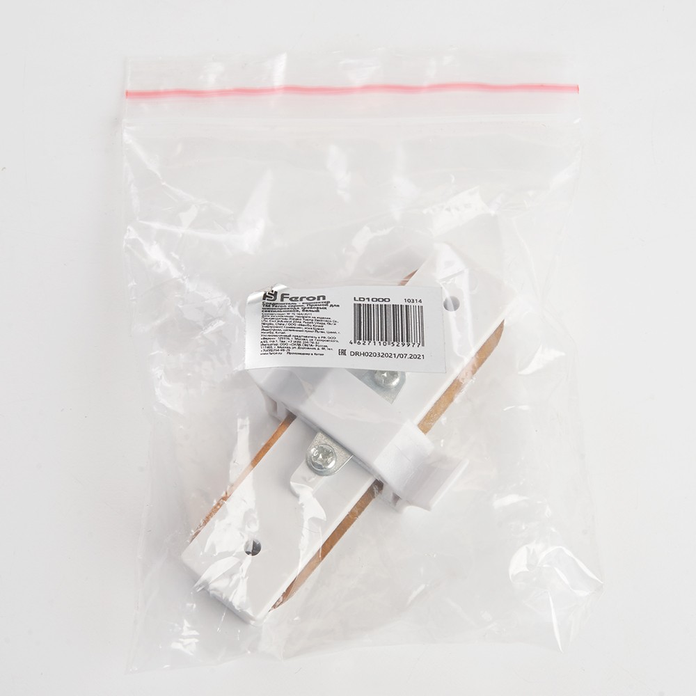 Комлпектующая (соединитель, коннектор, заглушка, подвес), которую используют Однофазные трековые системы производителя Feron линейка LD1000 Коннектор прямой для шинопровода, белый, LD1000 для CAB1003