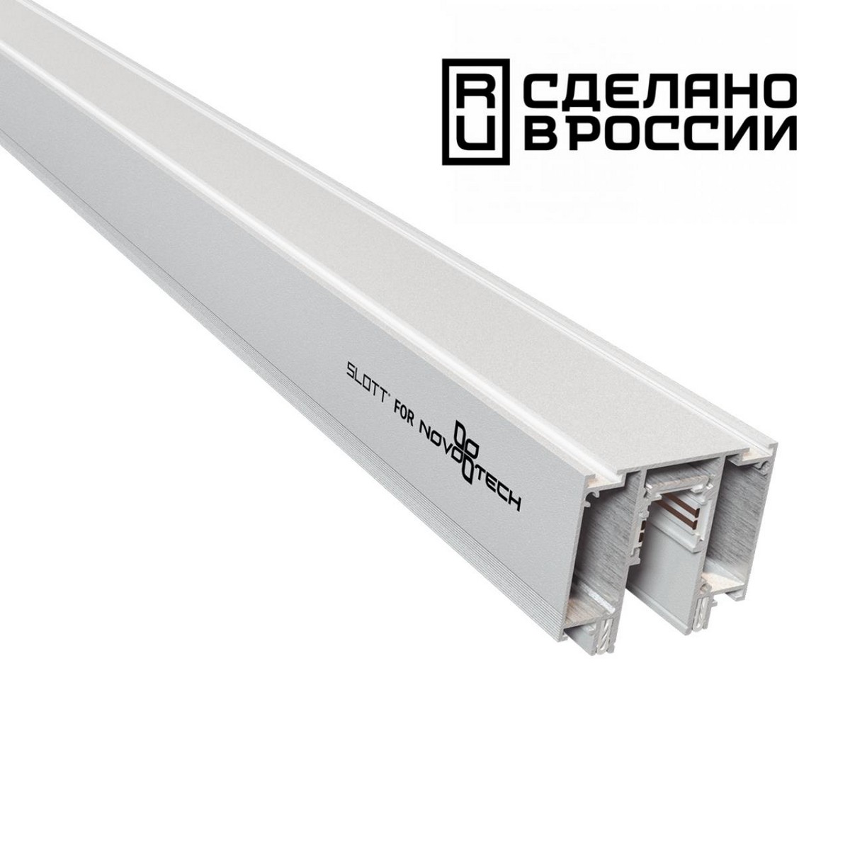 Трек SLOTT for NOVOTECH для низковольтной (48В) трековой системы FLUM. Это эксклюзивное, безальтернативное решение в мире натяжных потолков. Именно демпферная система, которая лежит в основе конструкции трека, позволяет внедрять систему и в тканевые, и в ПВХ потолки. Важной особенностью решения является его полноценность. Трек встраивается просто, без вспомогательного монтажа. Токопроводящие шины располагаются на вертикальных стенках профиля. Такое положение делает их совершенно незаметными для глаза. Сам профиль выполнен из алюминиевого сплава высокого качества. Его жёсткость обеспечивается толщиной стенок и выверенной геометрией конструкции. Данный трек не укомплектован токопроводом (арт. 135098) и заглушками (арт. 135132) - их нужно приобретать отдельно!