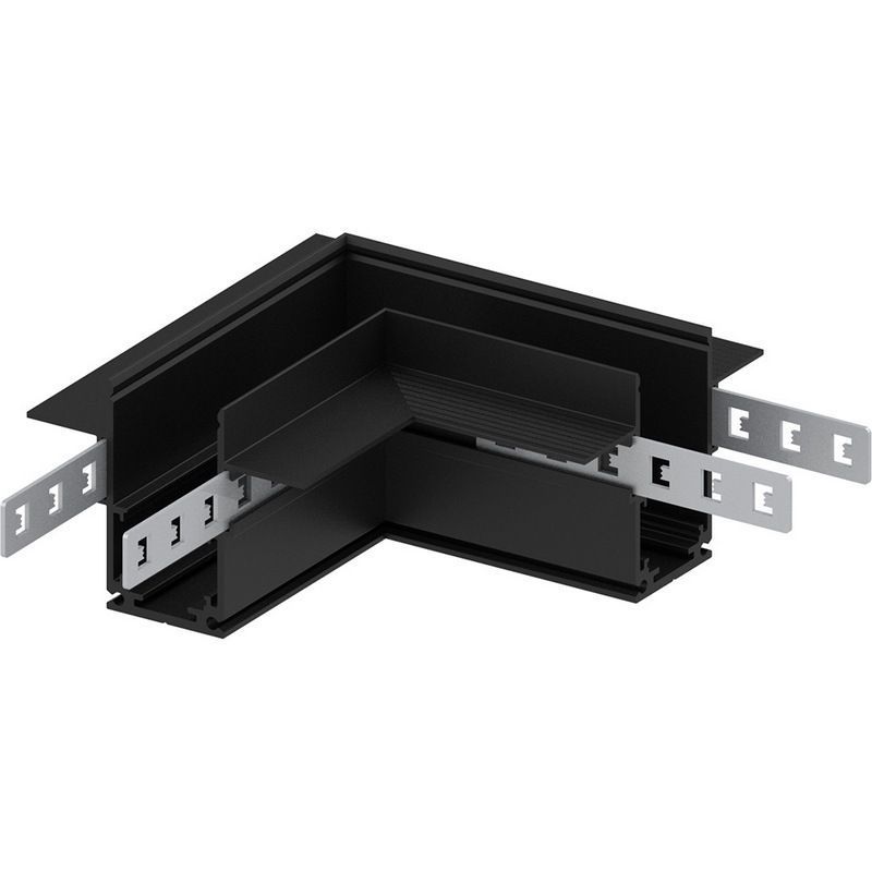 Комлпектующая (соединитель, коннектор, заглушка, подвес), которую используют Магнитные трековые системы производителя Feron линейка LD2004 Соединитель угловой для низковольтного встраиваемого шинопровода, черный, LD2004