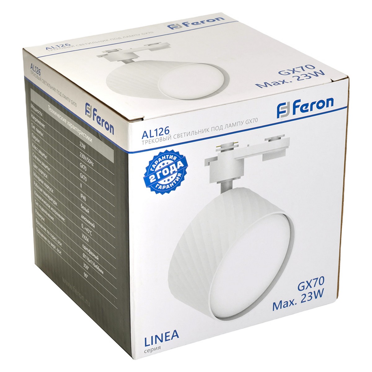 Светильник Feron AL126 трековый GX70 белый 48778 по цене 401 руб. с фотографией и техническими характеристиками. Для покупки товара нажмите кнопку "Купить" и перейдите в корзину или позвоните по телефону 8 (495) 585 32 60 или 8 (800) 222 23 53.