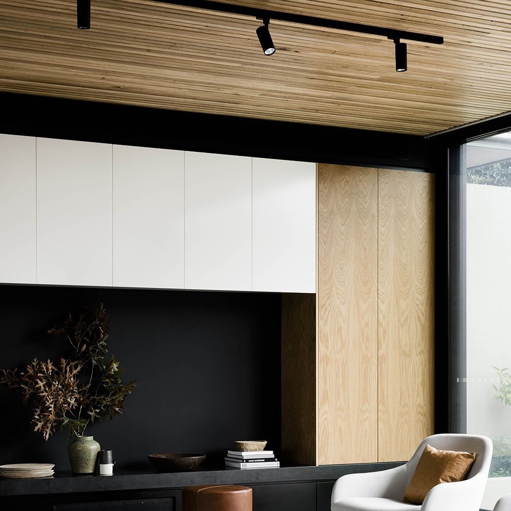 Это лучший вариант для создания акцентного освещения внутри помещения, они позволяют регулировать направление угла светового потока и расставить акценты на определённых деталях интерьера. Благодаря тому, что светильники можно легко перемещать по однофазному шинопроводу, трековая система получается мобильной и её можно установить на любой высоте (с помощью аксессуара CAB1002).