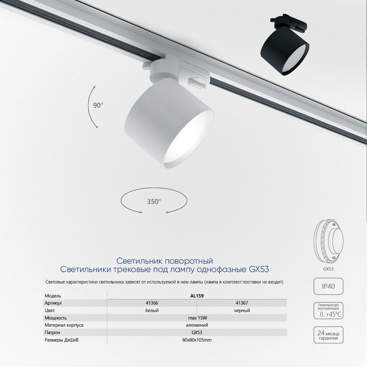 Светильник обладает возможностью вращения на 350° и наклона на 90°, что позволяет направлять свет в нужные зоны, подчеркивая архитектурные элементы или создавая акценты на определённых объектах. Компактные размеры (80*80*105 мм) позволяют устанавливать его в ограниченных пространствах, а алюминиевый корпус обеспечивает долговечность и стойкость к внешним воздействиям. Этот трековый светильник отлично подходит как для основного, так и для декоративного освещения, делая его универсальным выбором для любого помещения.