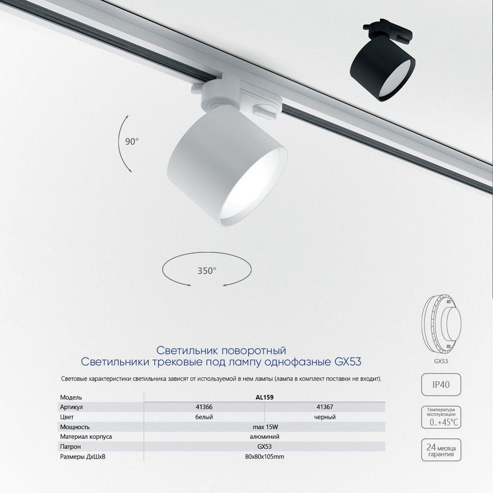 Светильник Feron AL159 трековый однофазный на шинопровод под лампу GX53 белый 41366 по цене 488 руб. с фотографией и техническими характеристиками. Для покупки товара нажмите кнопку "Купить" и перейдите в корзину или позвоните по телефону 8 (495) 585 32 60 или 8 (800) 222 23 53.