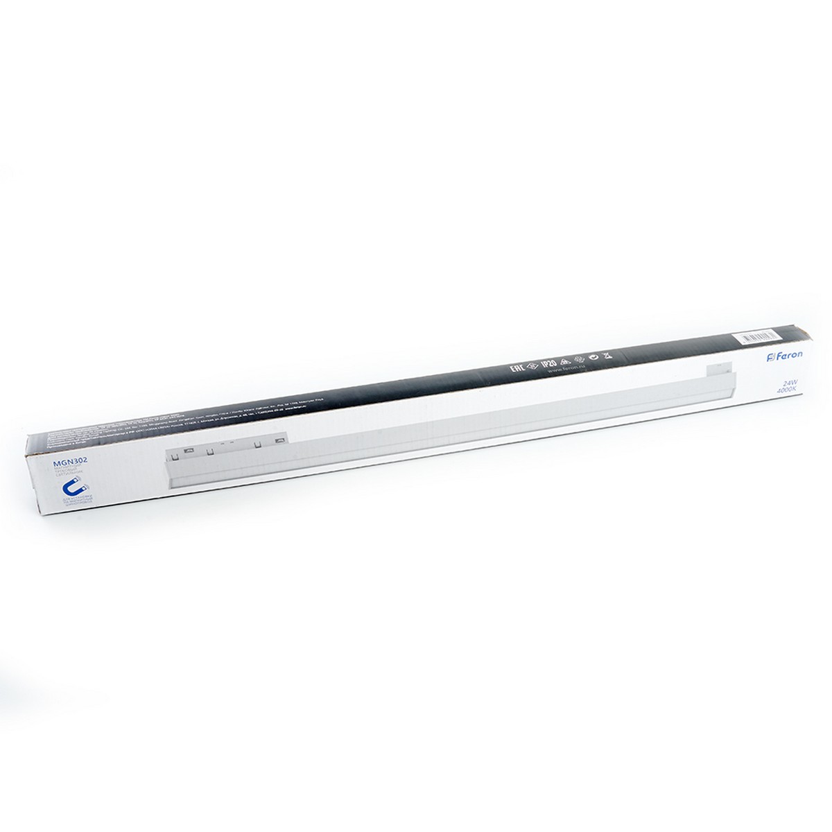 Светильник светодиодный Feron MGN302 — это идеальное решение для создания качественного освещения в любом интерьере. С мощностью 24 Вт и световым потоком 1920 Лм, он обеспечивает яркий и равномерный свет с цветовой температурой 4000K (нейтральный белый), что делает его подходящим для основного и декоративного освещения. Оснащенный трековой системой, светильник можно легко перемещать по шинопроводу, создавая зональное освещение по вашему желанию. Корпус выполнен из прочного алюминия в классическом белом цвете, что делает его универсальным элементом для любого стиля. Компактные размеры 600x22x43 мм в сочетании с поликарбонатным рассеивателем позволяют достичь оптимального распределения света. Feron MGN302 — лучший выбор для современных интерьеров.