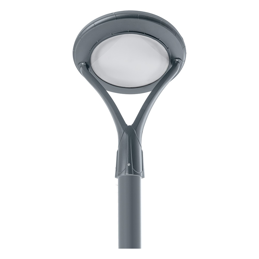 Корпус светильника, выполненный из прочного алюминия и окрашенный в нейтральный серый цвет, гармонично впишется в любой городской или парковый ландшафт. Модель идеально подходит для монтажа на столбах, что делает ее отличным выбором для освещения парков, площадей или парковочных зон.