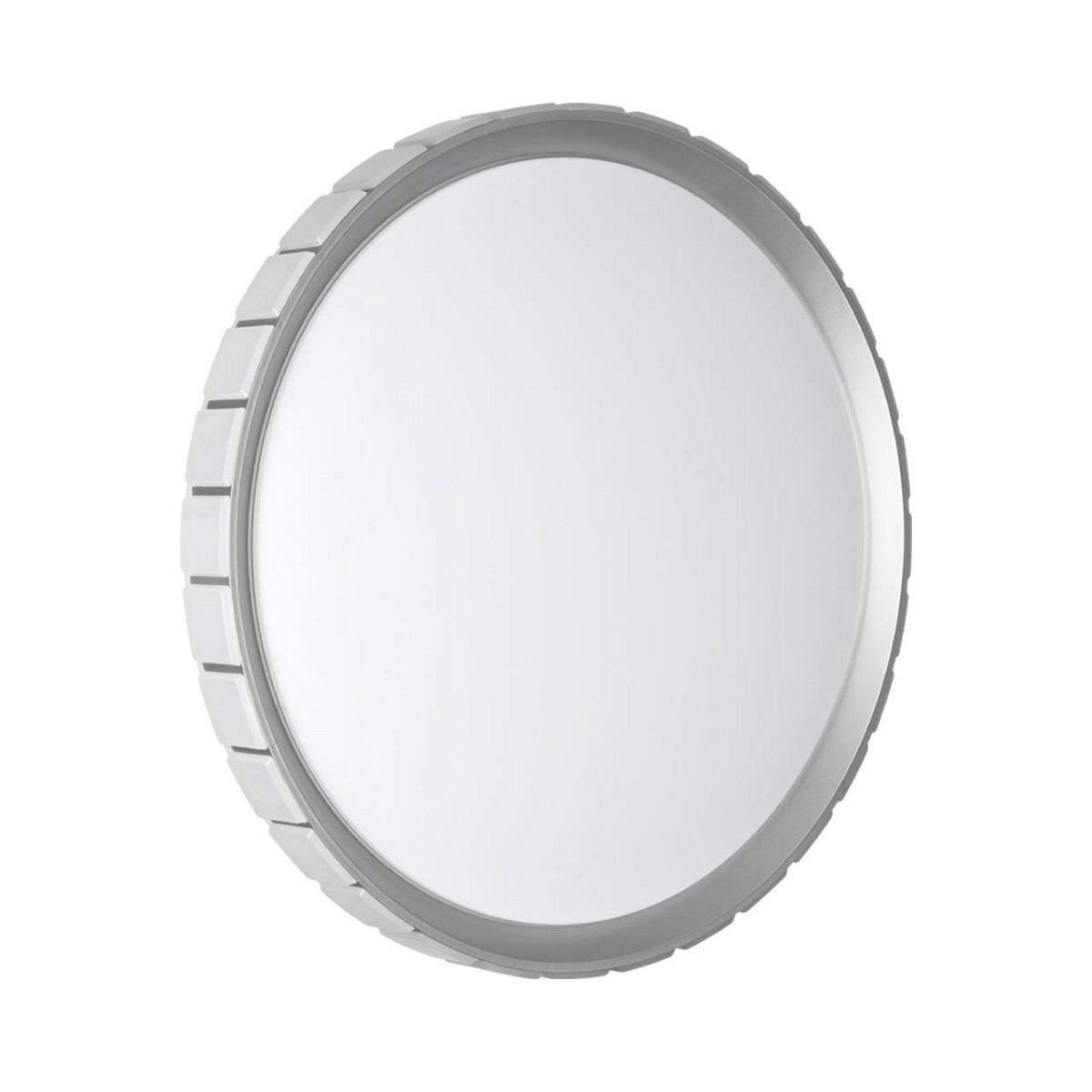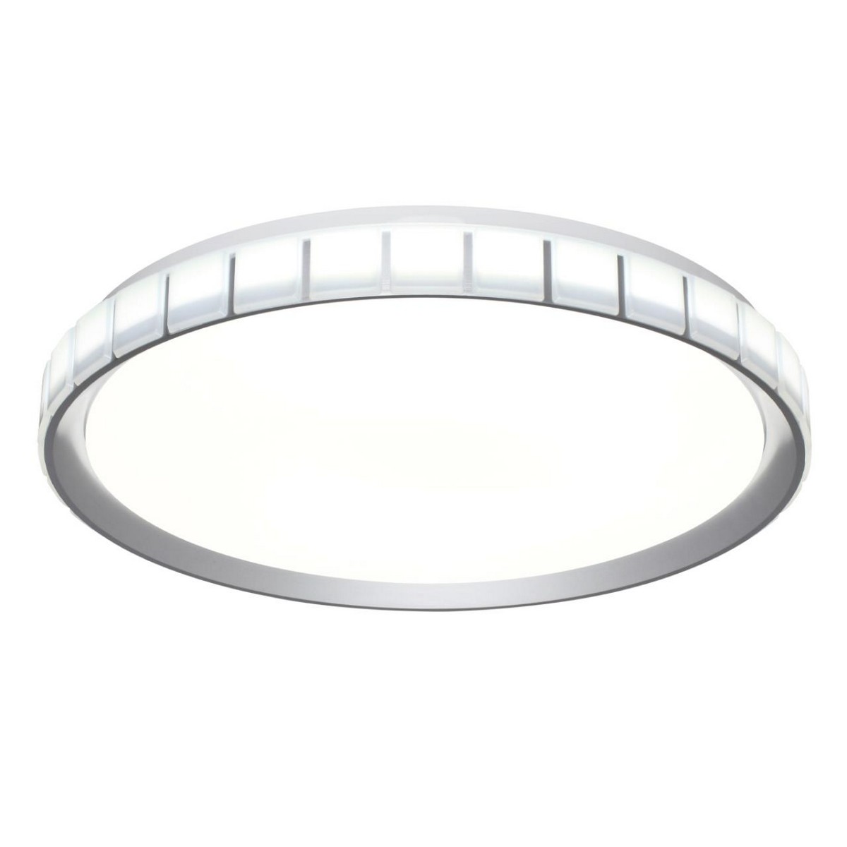 Светильник 7696/EL линии KUPI SILVER состоит из металлического основания (базы) и пластикового рассеивателя. Материал рассеивателя - высококачественный пластик марки PMMA 2.0 белого цвета с матовой, гладкой поверхностью. Пластик обеспечивает светильнику равномерное рассеивание и хорошее светопропускание. Форма плафона: круглая, декорирована рельефным пластиковым светопропускающим ободом, цвет серебро. Степень защиты IP43 позволяет использовать светильник в определенных зонах влажных помещений. В комплект входит заменяемый LED модуль с линзами, мощностью 70Вт, которая соответствует лампе накаливания 610Вт. А также пульт ДУ (с креплением на стену), с помощью которого осуществляется плавное изменение цветовой температуры 3000-6000К, изменение яркости, переход в режим переключения теплого/белого/холодного/ночного света. Светильник имеет функцию "память".