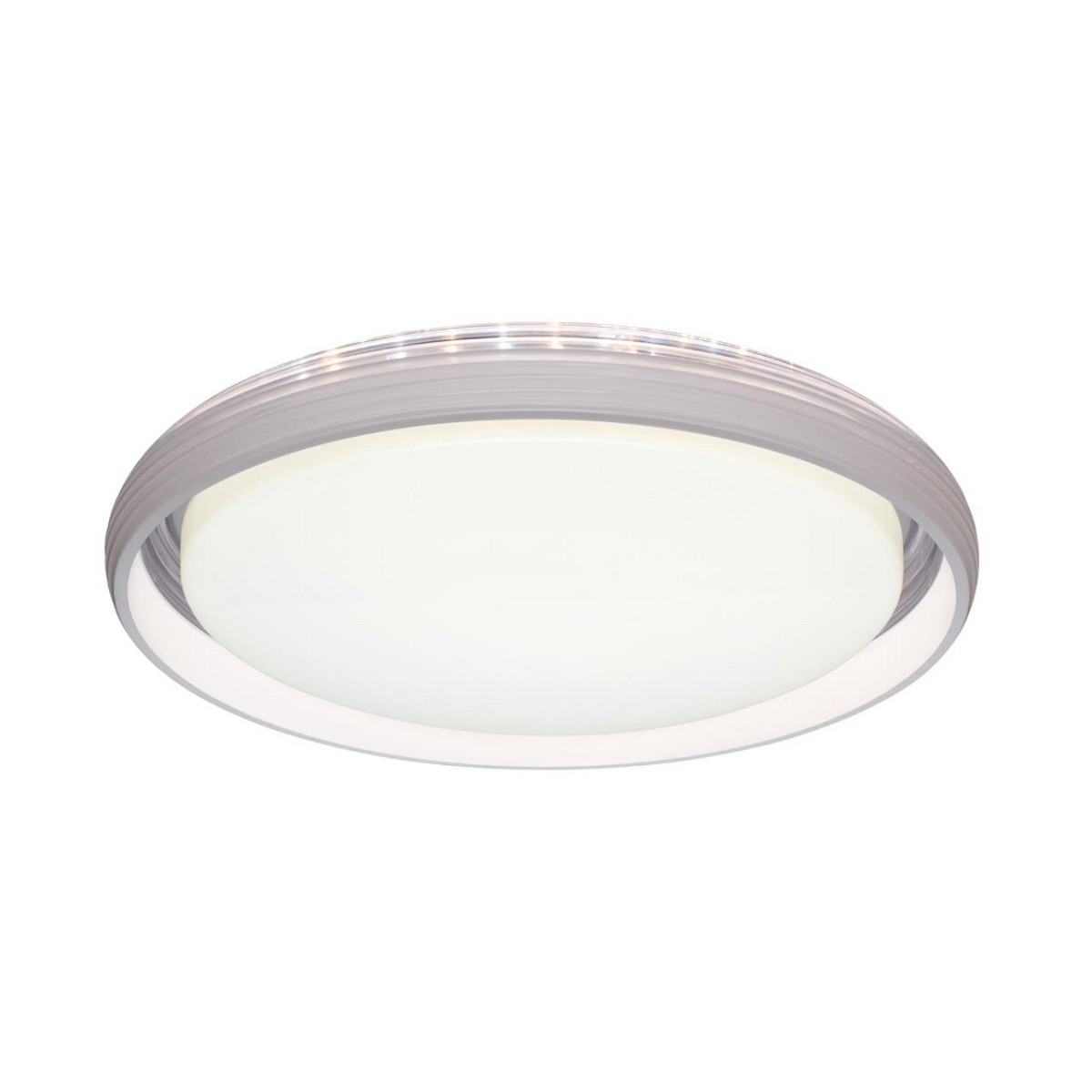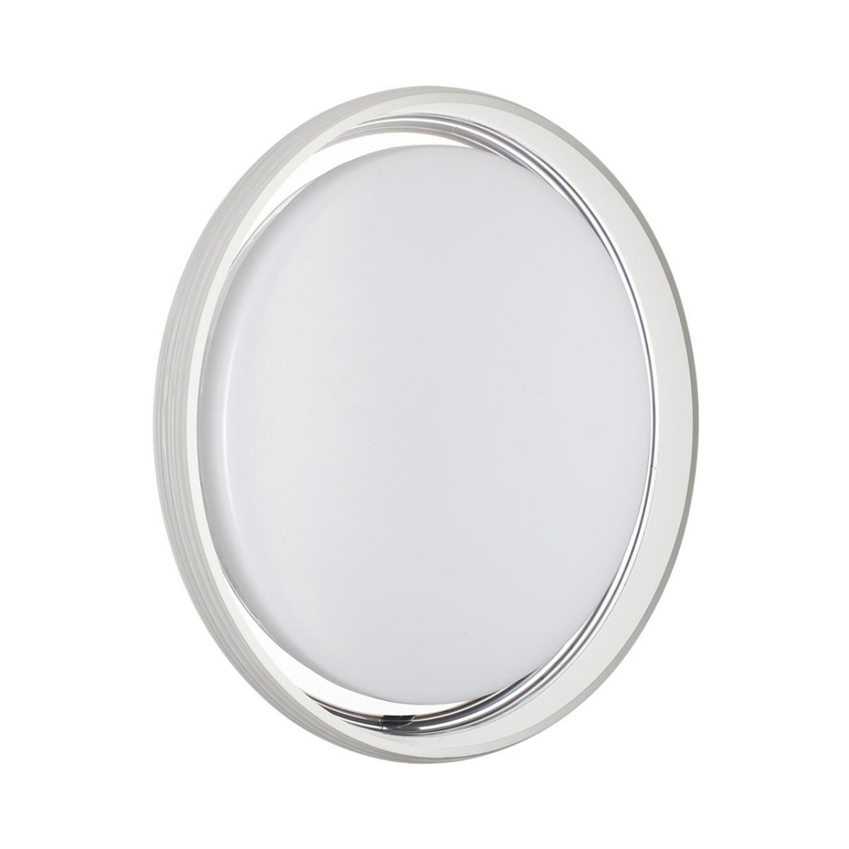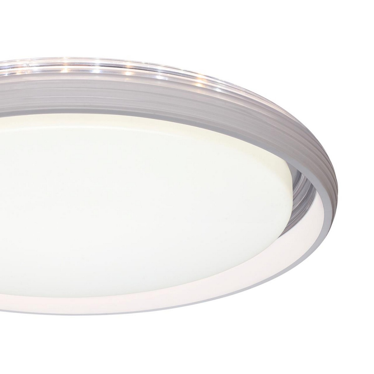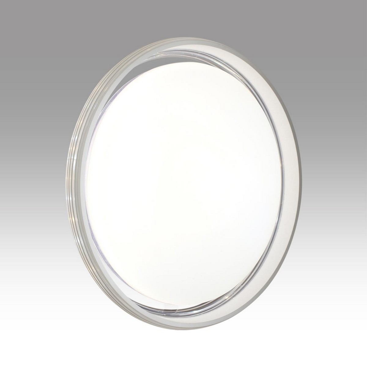 Светильник 7697/DL линии HANI состоит из металлического основания (базы) и пластикового рассеивателя. Материал рассеивателя - высококачественный пластик марки PMMA 2.0 белого цвета с глянцевой поверхностью, без текстуры. Пластик обеспечивает светильнику равномерное рассеивание и хорошее светопропускание. Форма плафона: круглая, декорирована многослойным ободом из пластика белого цвета у края плафона и прозрачного цвета у его основания. Степень защиты IP43 позволяет использовать светильник в определенных зонах влажных помещений. В комплект входит заменяемый LED модуль с линзами, мощностью 48Вт, которая соответствует лампе накаливания 440Вт. А также пульт ДУ (с креплением на стену), с помощью которого осуществляется плавное изменение цветовой температуры 3000-6000К, изменение яркости, переход в режим переключения теплого/белого/холодного/ночного света. Светильник имеет функцию "память".