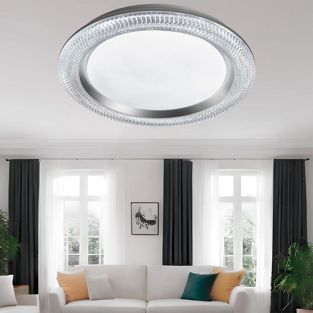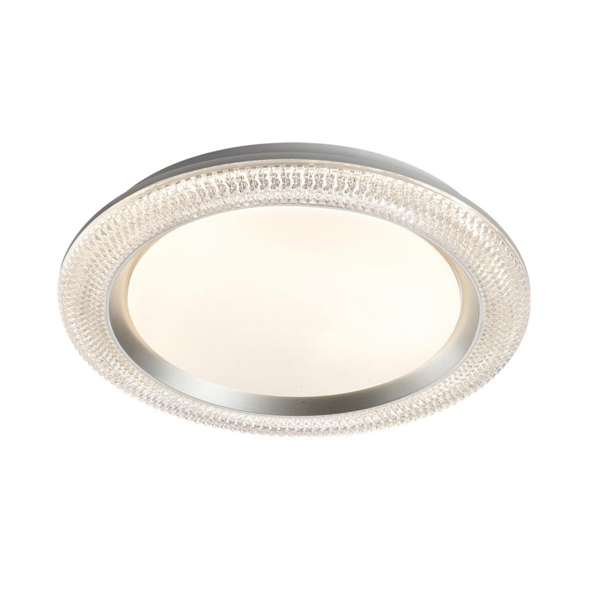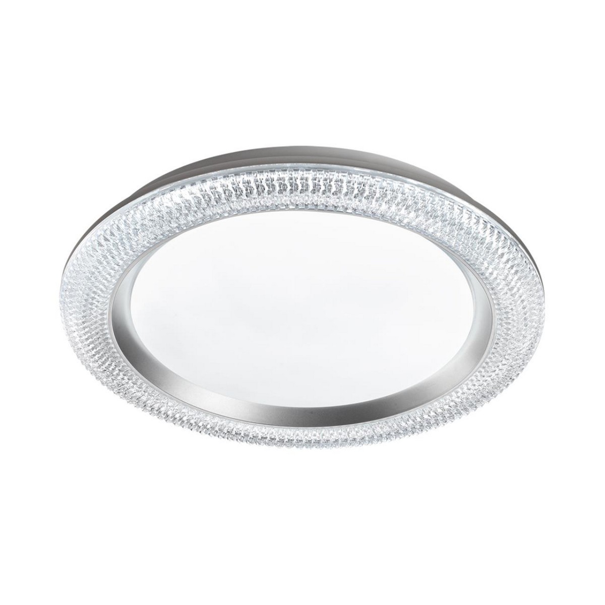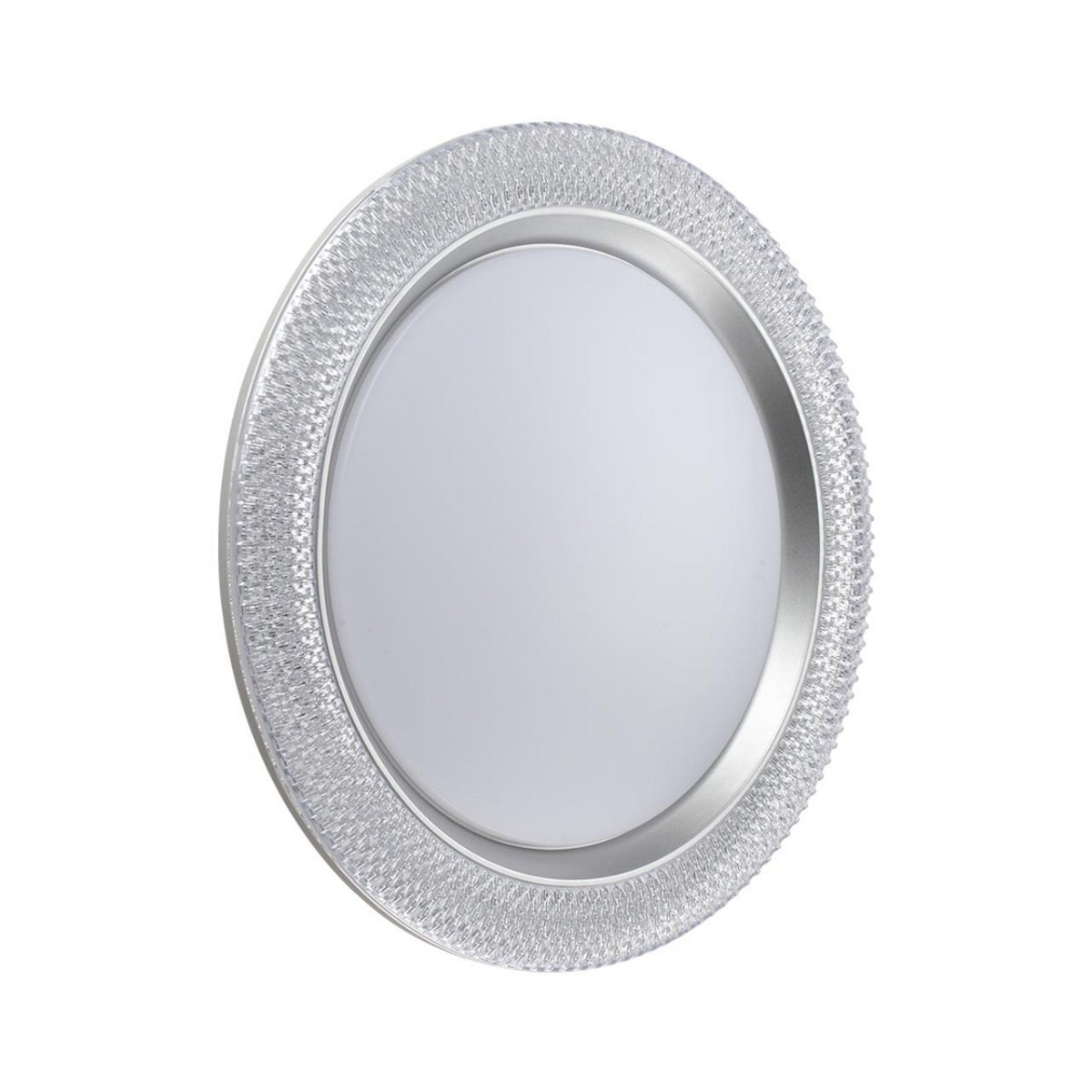 Светильник 7782/DL линии VENDY состоит из металлического основания (базы) и пластикового рассеивателя. Материал рассеивателя - высококачественный пластик марки PMMA 2.0 белого цвета с матовой поверхностью, обеспечивающий светильнику равномерное рассеивание и хорошее светопропускание.Форма плафона круглая, декорирована прозрачным акриловым ободом под хрусталь и кантом серебристого цвета. Степень защиты IP43 позволяет использовать светильник в определенных зонах влажных помещений. В комплект входит заменяемый LED модуль с линзами, мощностью 48Вт, которая соответствует лампе накаливания 440Вт. А также пульт ДУ, с помощью которого осуществляется плавное изменение цветовой температуры 3000-6000К, изменение яркости, переход в режим переключения теплого/белого/холодного/ночного света. Светильник имеет функцию "память".