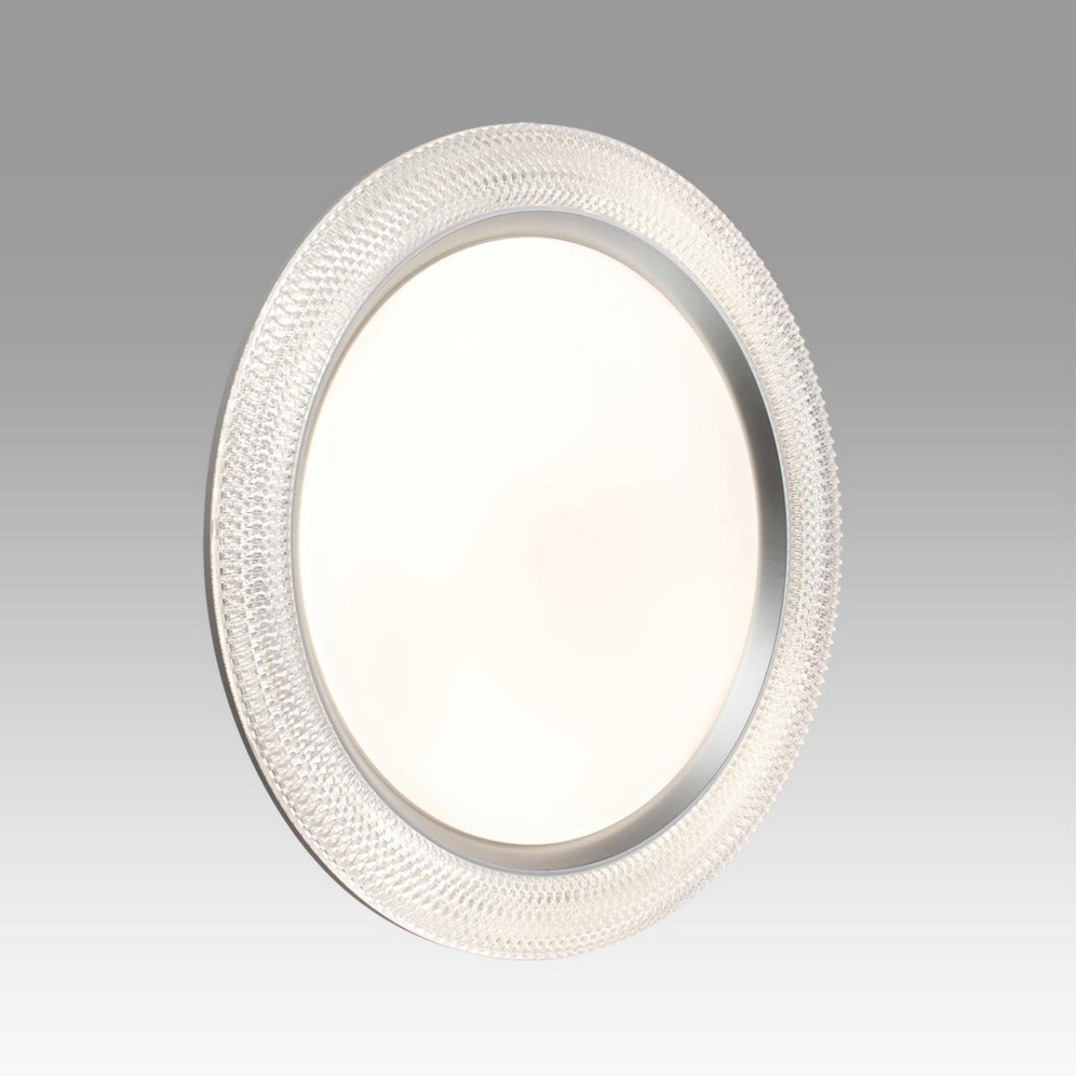 Светильник 7782/ЕL линии VENDY состоит из металлического основания (базы) и пластикового рассеивателя. Материал рассеивателя - высококачественный пластик марки PMMA 2.0 белого цвета с матовой поверхностью, обеспечивающий светильнику равномерное рассеивание и хорошее светопропускание.Форма плафона круглая, декорирована прозрачным акриловым ободом под хрусталь и кантом серебристого цвета. Степень защиты IP43 позволяет использовать светильник в определенных зонах влажных помещений. В комплект входит заменяемый LED модуль с линзами, мощностью 70Вт, которая соответствует лампе накаливания 610Вт. А также пульт ДУ, с помощью которого осуществляется плавное изменение цветовой температуры 3000-6000К, изменение яркости, переход в режим переключения теплого/белого/холодного/ночного света. Светильник имеет функцию "память".