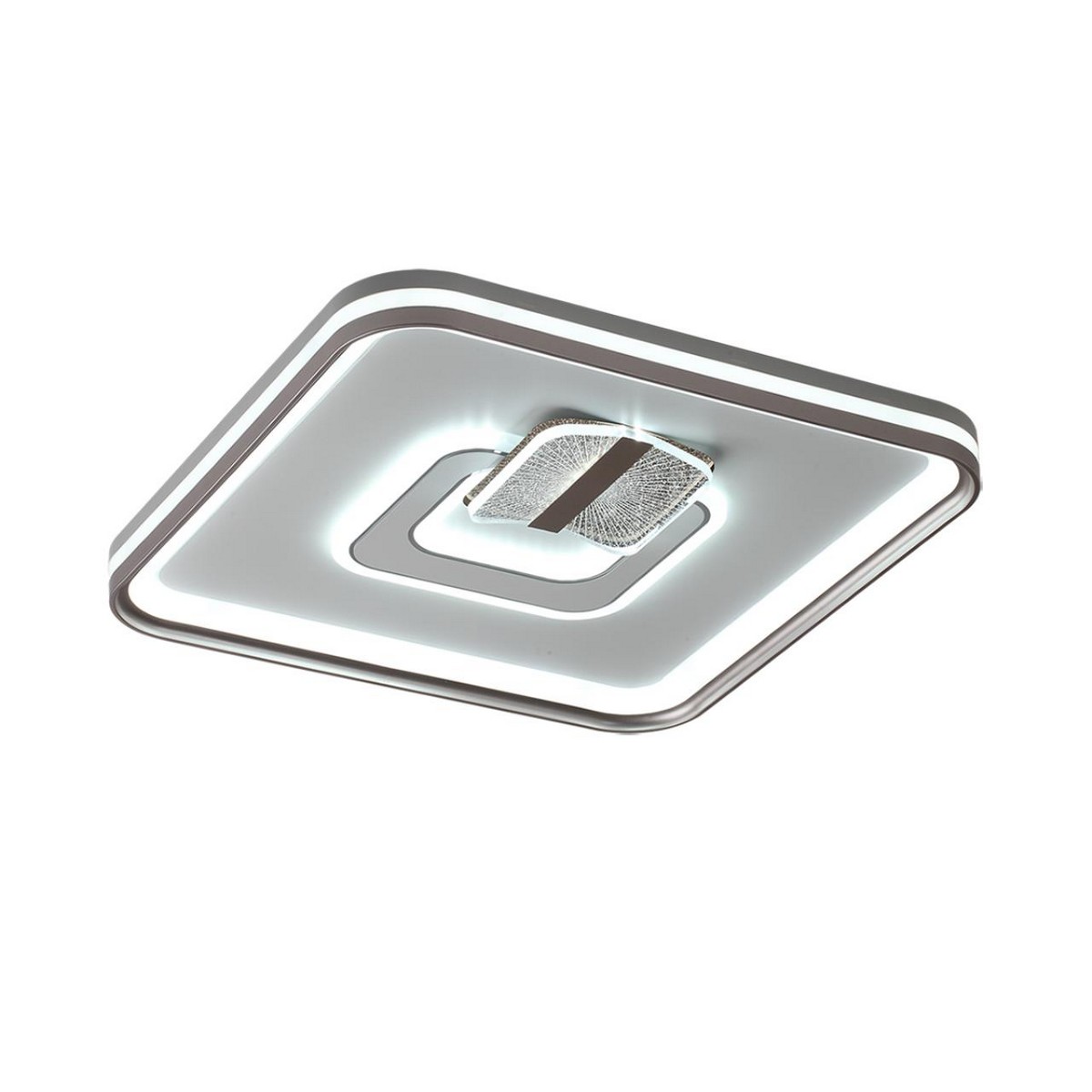 Светильники GEMINI имеют несколько контуров освещения, которые создают красивый декоративный эффект. В центре находится декоративный объемный элемент в виде квадрата из акрила с глиттером внутри, который добавляет светильнику декоративной привлекательности. Светильник оснащен пультом ДУ.