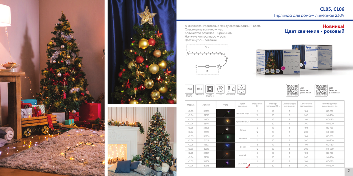 Светодиодная гирлянда FERON CL05 линейная арт. 32303 для применения внутри помещений. Выполнена в виде линии длиной 10 метров. 100 экономичных светодиодов меняющие свой цвет с помощью контроллера. Контроллер в комплекте. Гирлянда FERON CL05 линейная работает от сети 230 В. Длина зеленого кабеля питания - 1.5 метра.