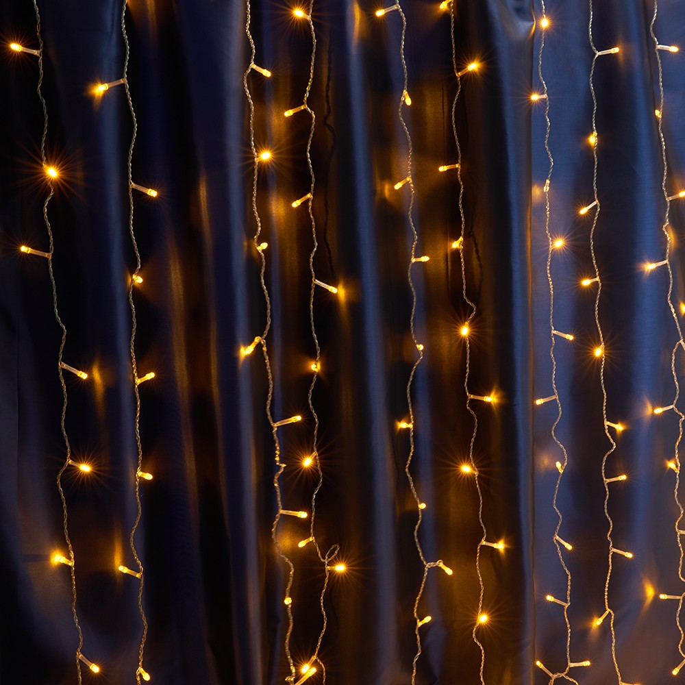 Гирлянда дождь FERON CL19, 204LED, (желтый), статичная (постоянного свечения), 2*1,5м+3м прозрачный шнур, расстояние между светодиодами 10см, IP44, 10W, от сети 230V, последовательное подключение до 5 гирлянд