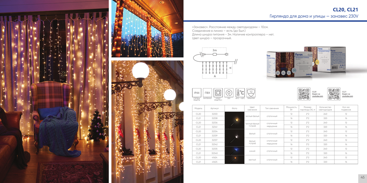 Светодиодная гирлянда Feron CL21 занавес статичная 3*2м + 3м 230V 2700К 220V 32338 по цене 997 руб. с фотографией и техническими характеристиками. Для покупки товара нажмите кнопку "Купить" и перейдите в корзину или позвоните по телефону 8 (495) 585 32 60 или 8 (800) 222 23 53.