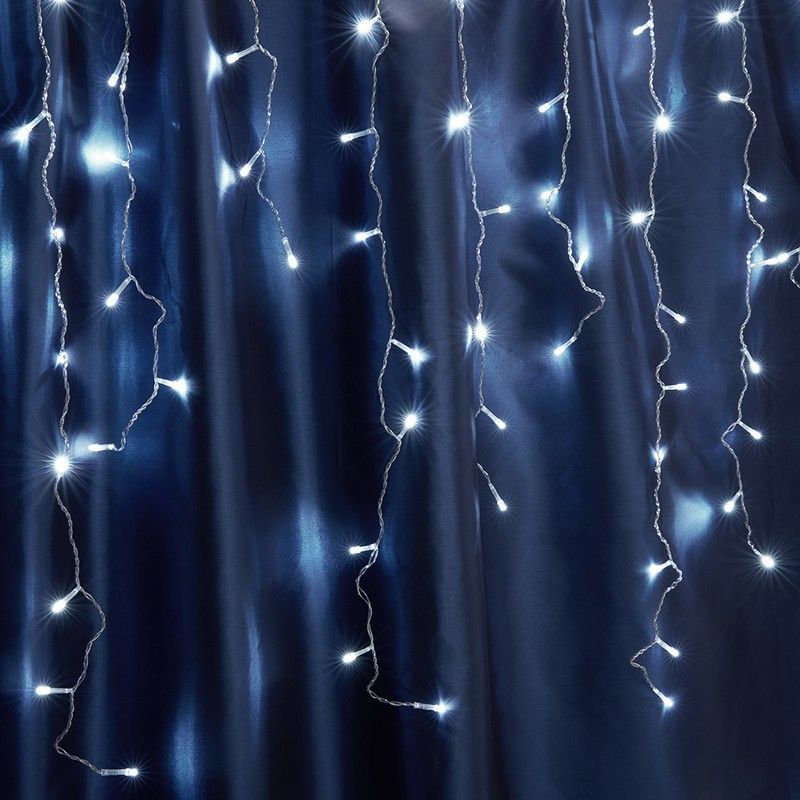 Гирлянда дождь FERON CL23, 240LED, 5000К (белый), с эффектом стробов, 5,3м+3м прозрачный шнур, расстояние между светодиодами 10см, IP44, 12W, от сети 230V, последовательное подключение до 5 гирлянд
