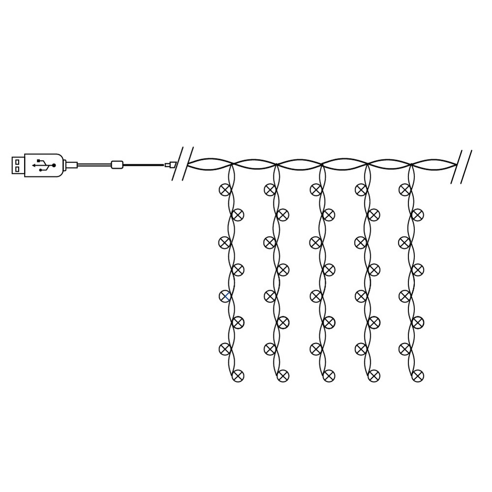 Гирлянда дождь FERON CL591, 480LED, 2700К (теплый белый), настраивается контроллером, 3*3м+3м расстояние между светодиодами 10см, IP20, 5W, USB DC 5V, пульт в комплекте,
